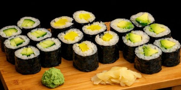 18 makis : 6 concombre, 6 avocat et 6 radis marinés