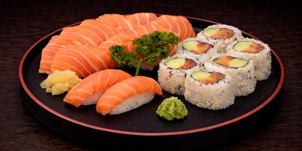 12 sashimis saumon | 6 makis California | 2 sushis saumon
