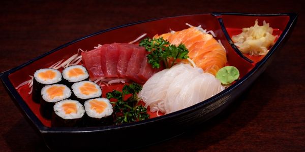 20 sashimis de poisson assortis : 10 saumon, 5 thon, 5 dorade